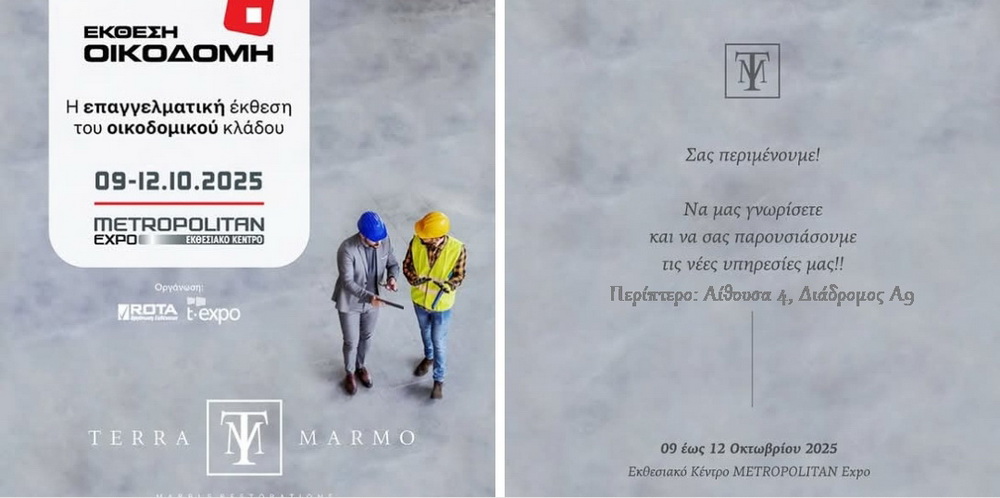 Terra di Marmo is pleased to announce its participation in the GREECE BUILD EXPO 2025, one of the most important events in the construction and building materials sector in Greece. During the exhibition, we will have the opportunity to showcase our unique services as well as our latest innovations.