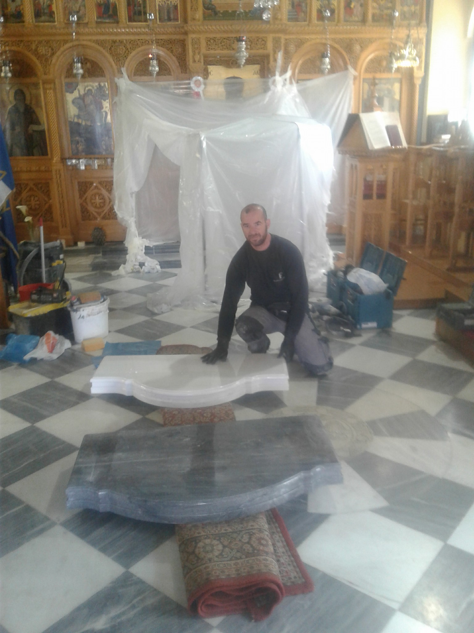 Surgical removal of old solid steps in front of fine gate and installation of new larger ones.