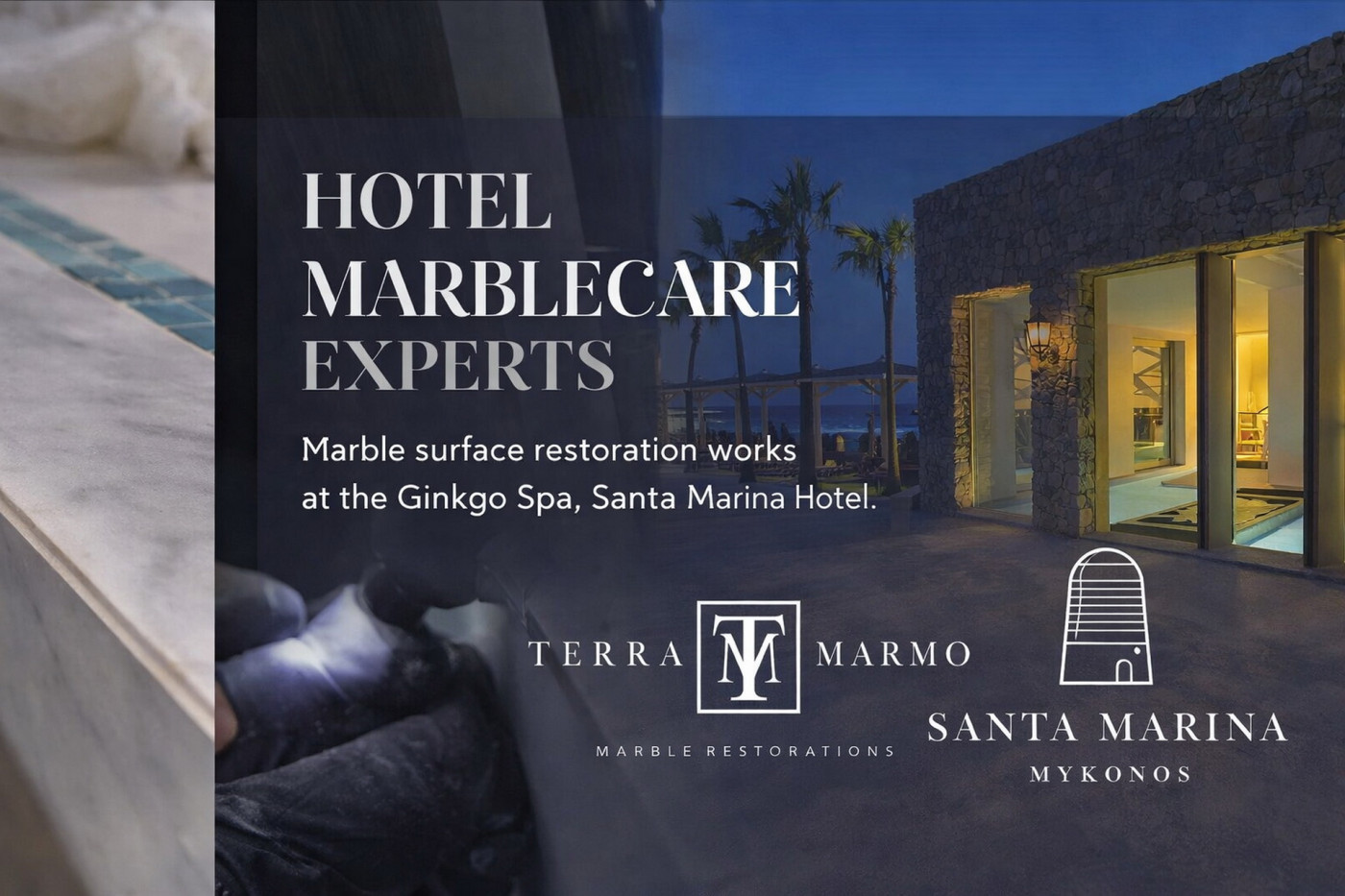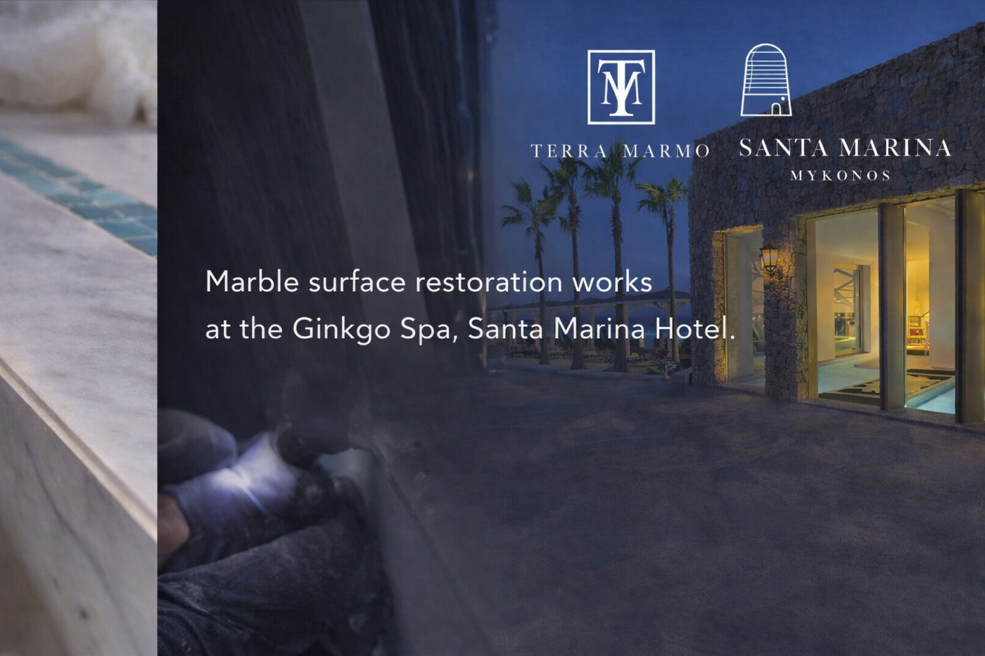 Στη Μύκονο, στο εμβληματικό ξενοδοχειακό συγκρότημα Santa Marina, στους χώρους του Ginkgo Spa, η ομάδα της Terra di marmo ανέλαβε ένα απαιτητικό έργο αναβάθμισης μαρμάρινων επιφανειών.