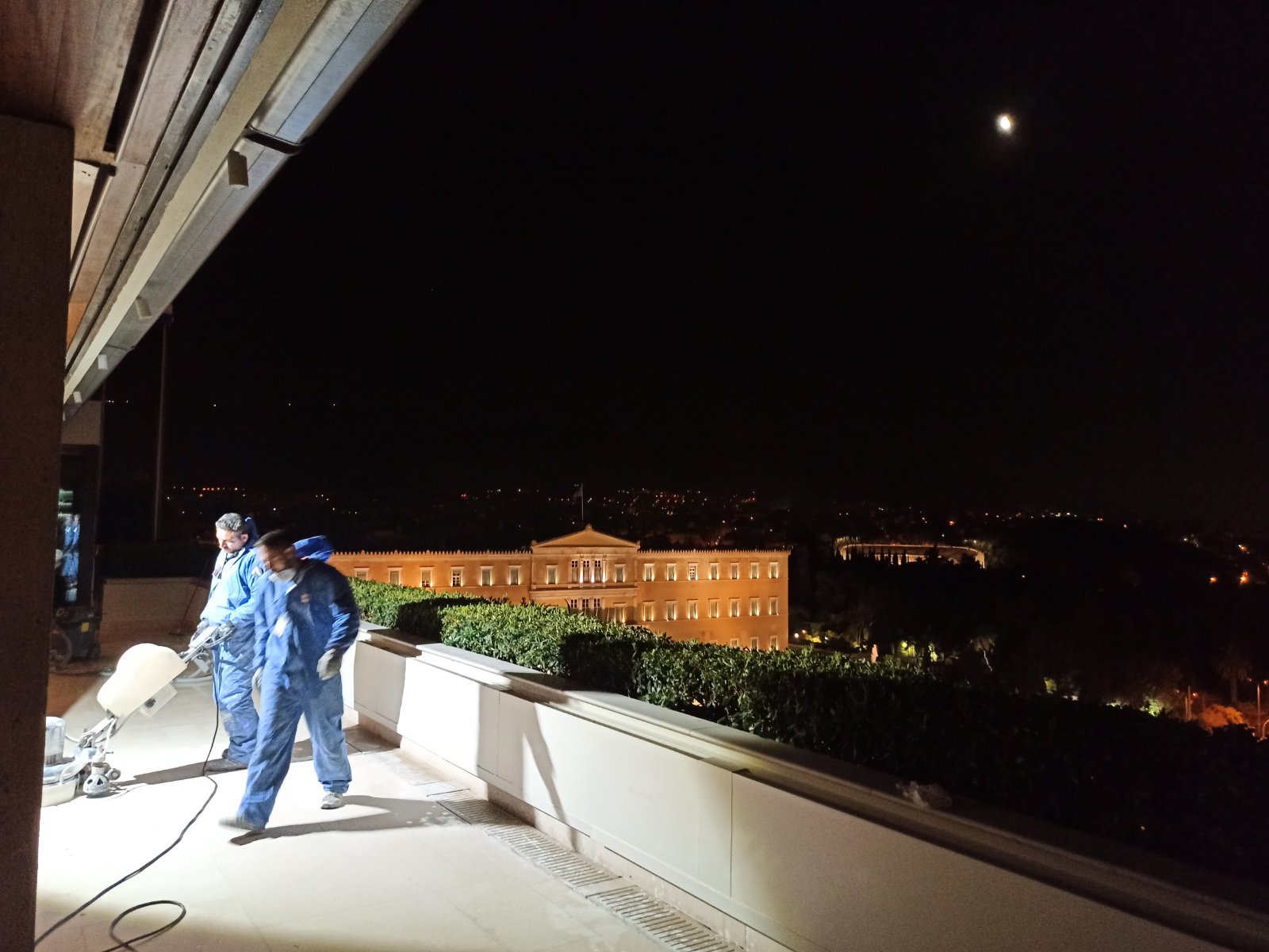 Ξενοδοχείο Grande Bretagne - Καθαρισμός και Γυάλισμα Μαρμάρων στο Roof Garden τη Νύχτα για την Εύρυθμη Λειτουργίας του Ξενοδοχείου